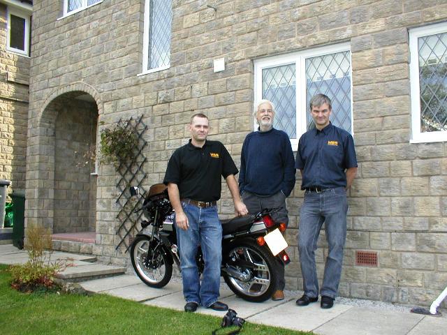 A final photo with the man who made it all possible, Rod Gibson (centre) editor, Classic Motorcycle Mechanics