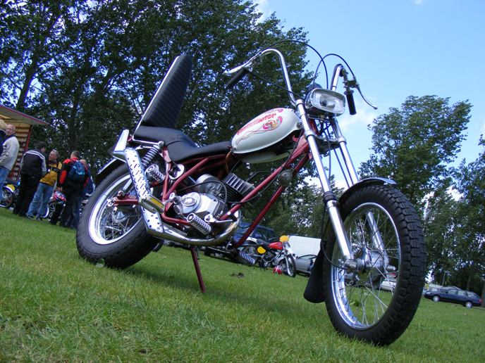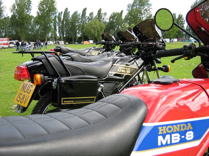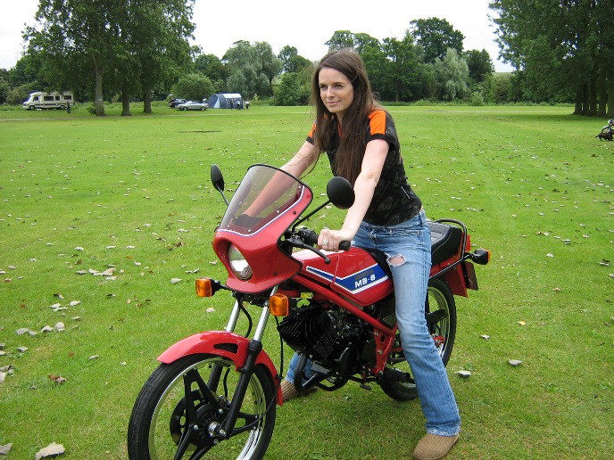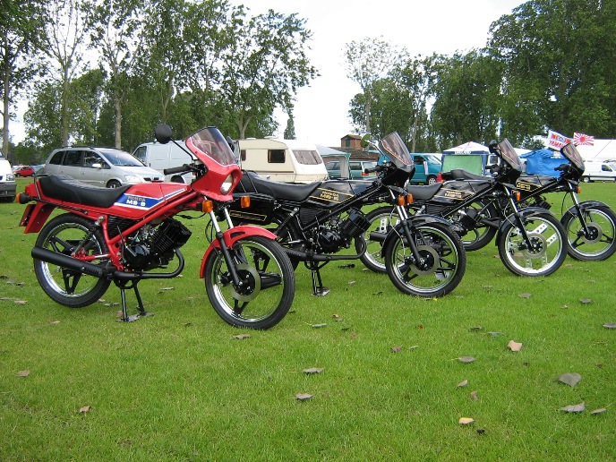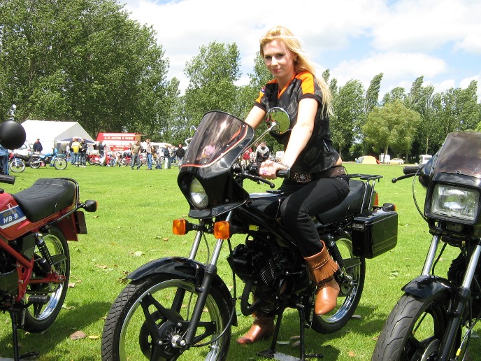 The "Sixteener Special" Sports Moped forum hold their annual event at Billing Aquadrome (Northampton). This is a weekend event and this year was held over the weekend of the 21st & 22nd of June. Saturday dawned wet and grey so full use of the marquee was made by a varied array of mopeds. Fortunately Sunday was a much better day although very windy. A large number entered the 20+ mile road run around the Northamptonshire countryside which proved that many of these bikes are not just show pieces as many owners held them flat out for most of the run. Many thanks to Dave Jefferson for organising the models that are shown gracing our bikes. We had a good turn out of MB's with Steve just finishing his German spec MB8 at midnight the night before the show. We also had Andrew from Harlow bring his black MB5 complete with H100 conversion and custom made exhaust. I also picked up 2nd place in the "best non pedalled" class.